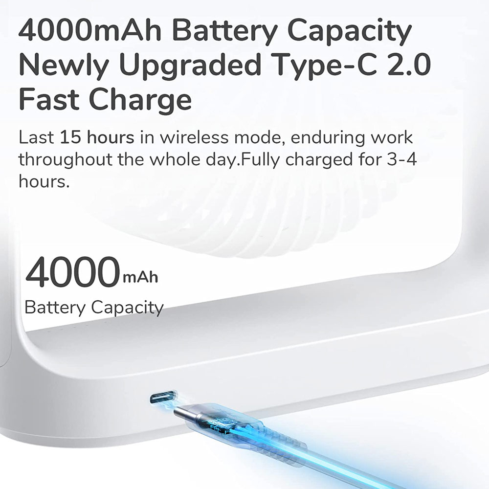 • 4000 mAh battery capacity: Type C 2.0 fast charge, can last 15 hours in wireless mode, Can also be used while charging.