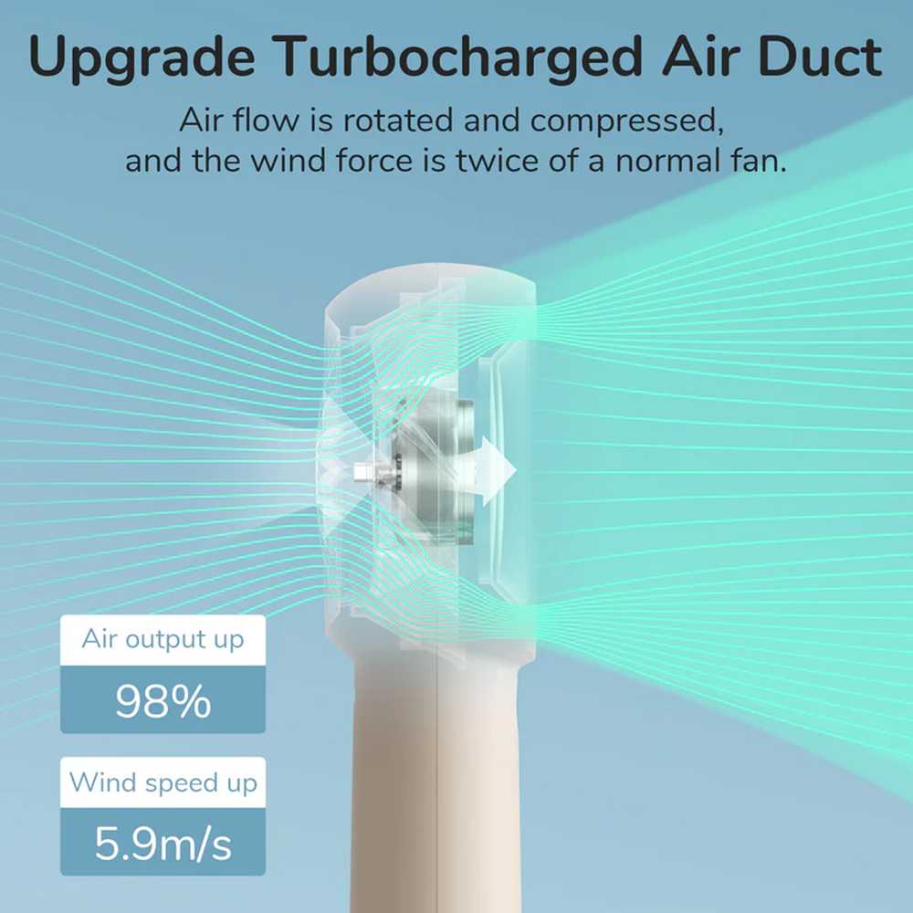 • Turbocharged 5-speed airflow with doubled hidden blades for stronger wind.