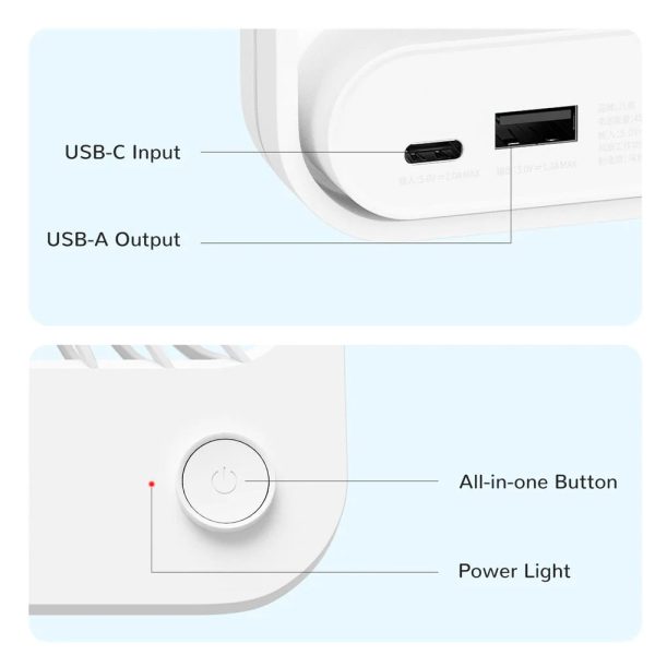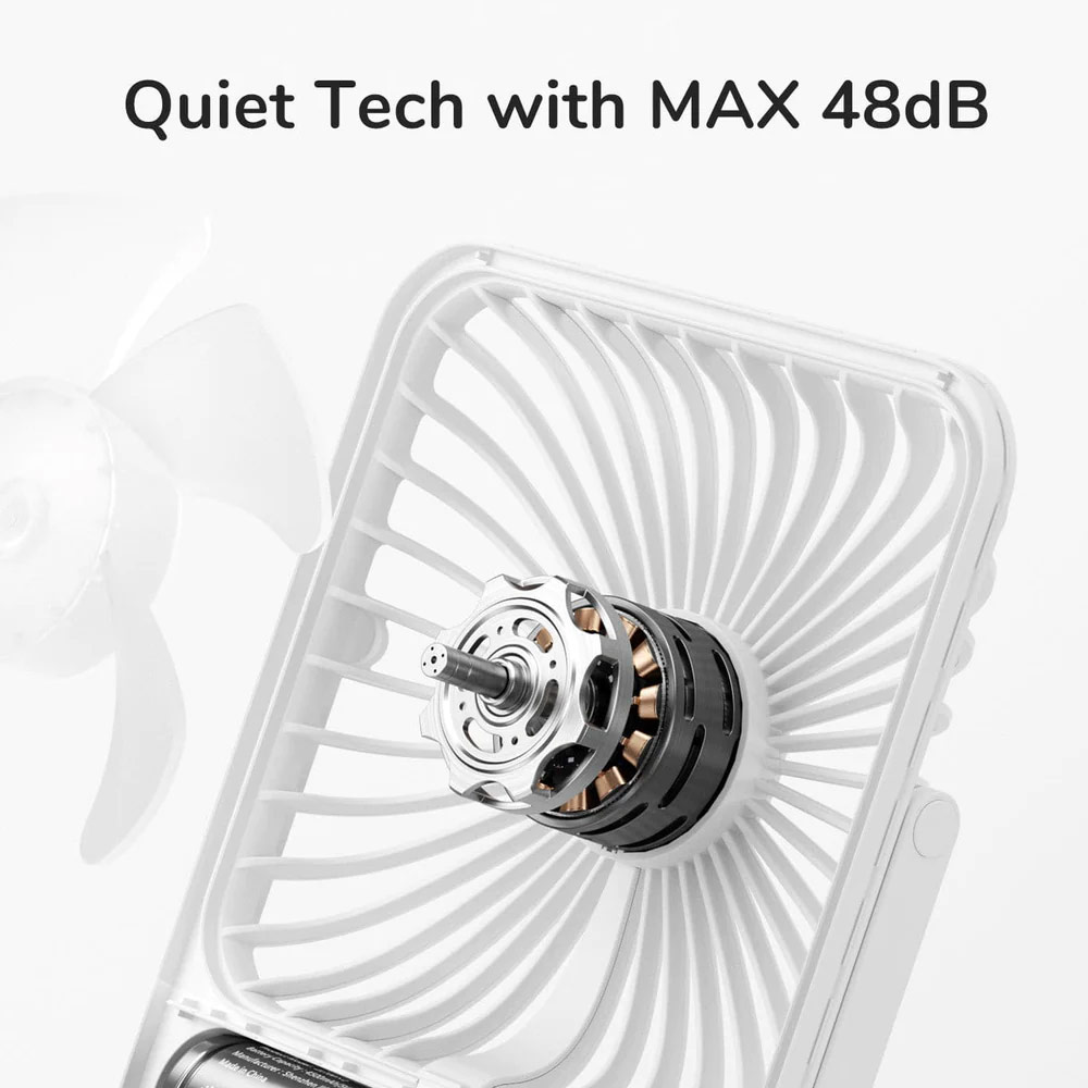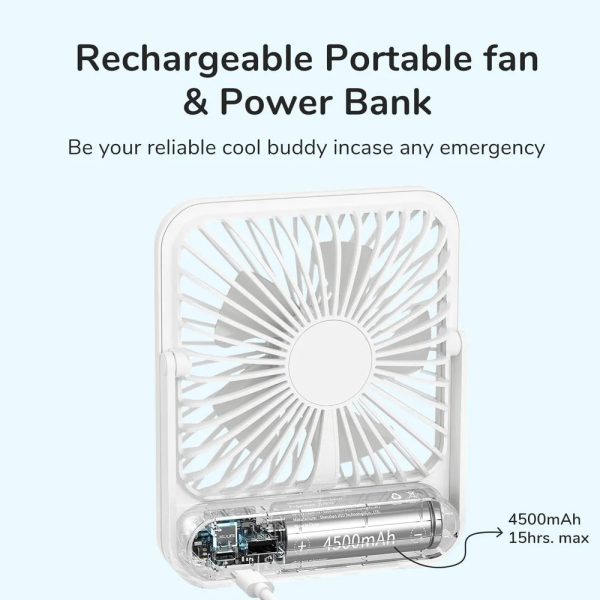 - Cordless and Rechargeable:This desktop fan has a built-in 4500 mAh energy-saving battery, which is not anxious for going out. And it is equipped with a USB interface, can be used as a power bank in an emergency as well.